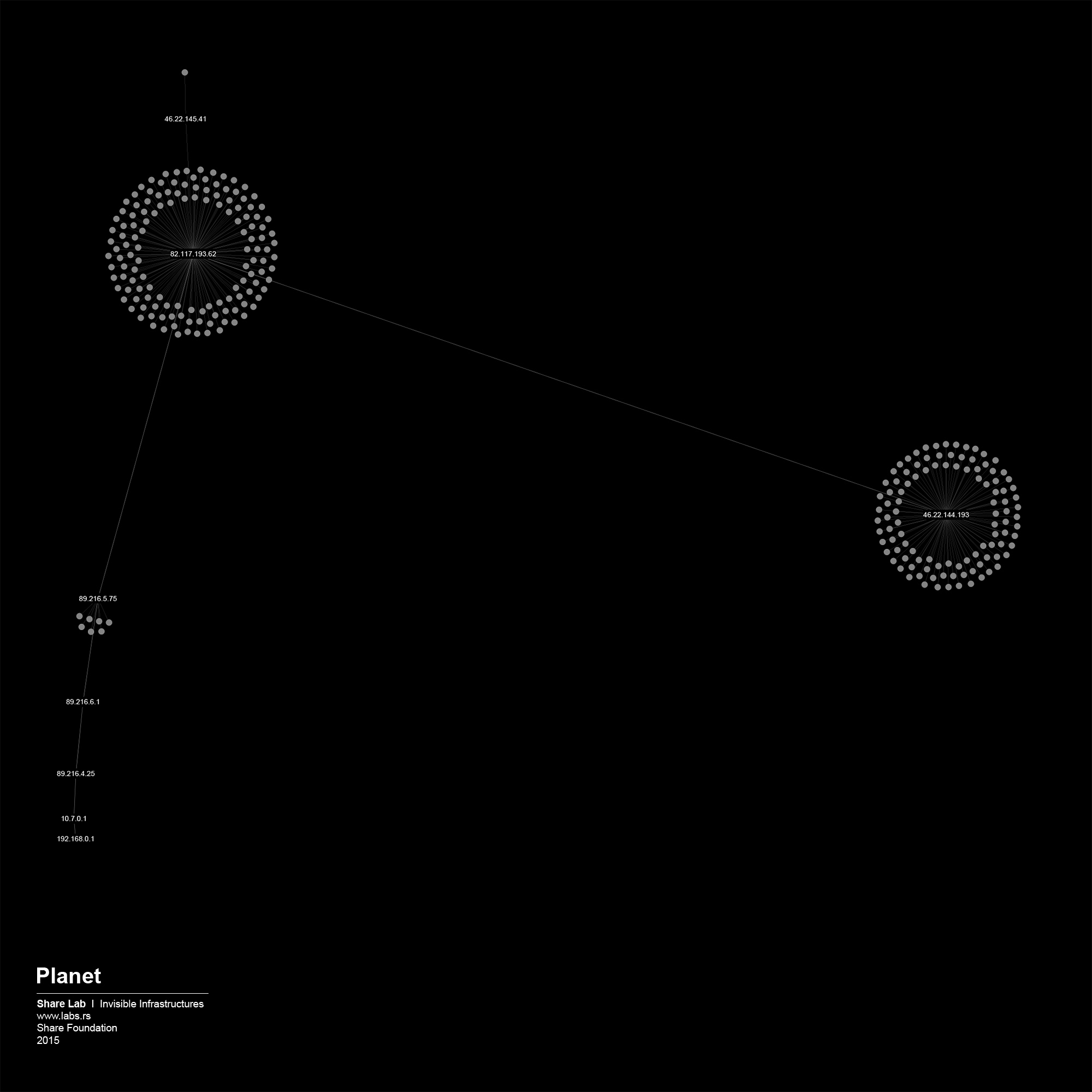 Fortunately, after SHARE Foundation analyzed the Proposal and started a media campaign, the Proposal of the Law was withdrawn from the parliamentary procedure following an intervention of the Government. In one part of the Proposal, it was written that the installation, maintenance and costs of the equipment intended for filtering is a responsibility of the ISPs. In order to create an argument regarding unreasonable costs that every ISP would have, we tried to analyze the network topology maps of every individual ISP in Serbia and try to guess how much and what kind of equipment they would need to purchase. Even though our method is not 100% accurate, we had in our hands something to work with, something that gave us an insight into the unknown and invisible design of the networks. By watching the map of Telekom Serbia’s network, the biggest ISP in Serbia and owner of the biggest share of the infrastructure, we could observe the highly centralized structure where almost all the main nodes, routers were connected to just two main servers. The logical conclusion is that in order to perform real time filtering they would need to instal equipment exactly in those two points. On the other hand, from the number of nodes attached to those two main routers, we can guess that they are able to process huge amounts of traffic, therefore the equipment that they would need to install would probably need to be of high-end performance. We were able to predict the type and cost of the theoretical filtering solution, giving that there are just a few manufacturers of such equipment.