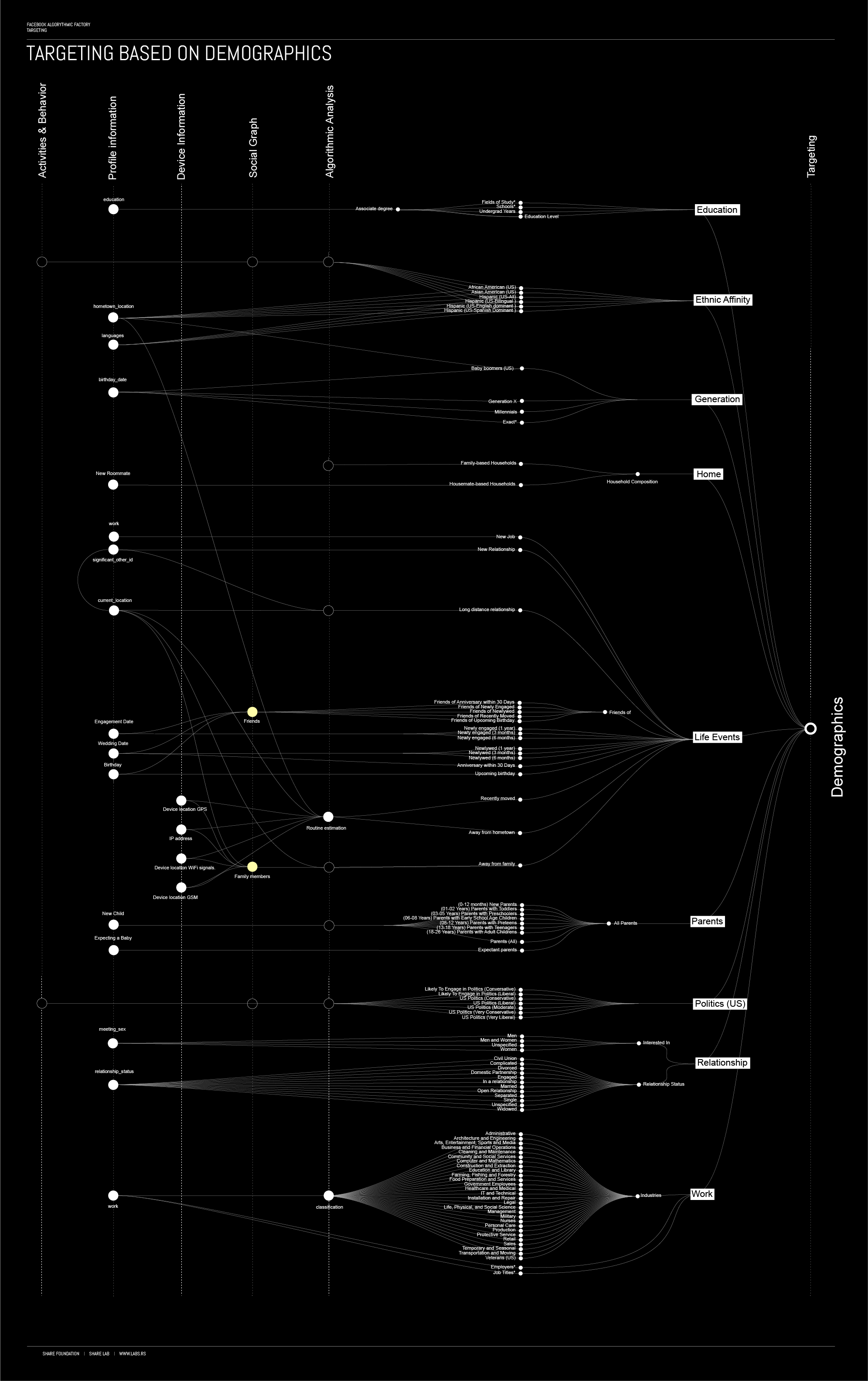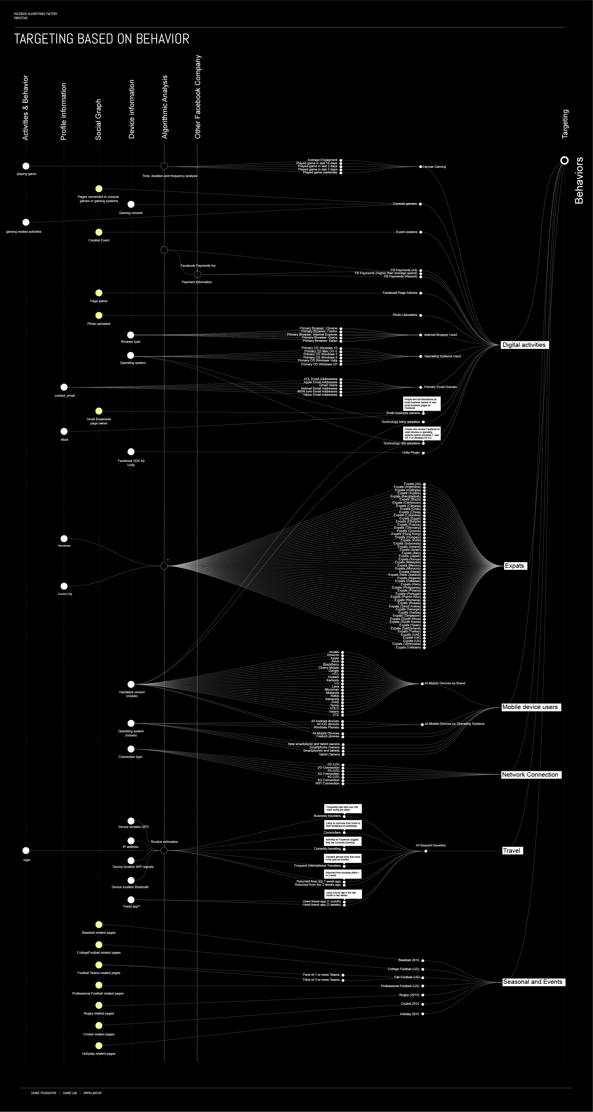 The following map is one of the final results of our investigation, but it can also be used as a guide through our stories, and practically help the reader to remain in the right direction and not to get lost in the complex maze of the Facebook Algorithmic Factory.